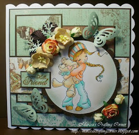 Marcea used a cute stamp called Beary Big Hugs by Belled & Whistles. She used Gabrielle papers by Bo Bunny.